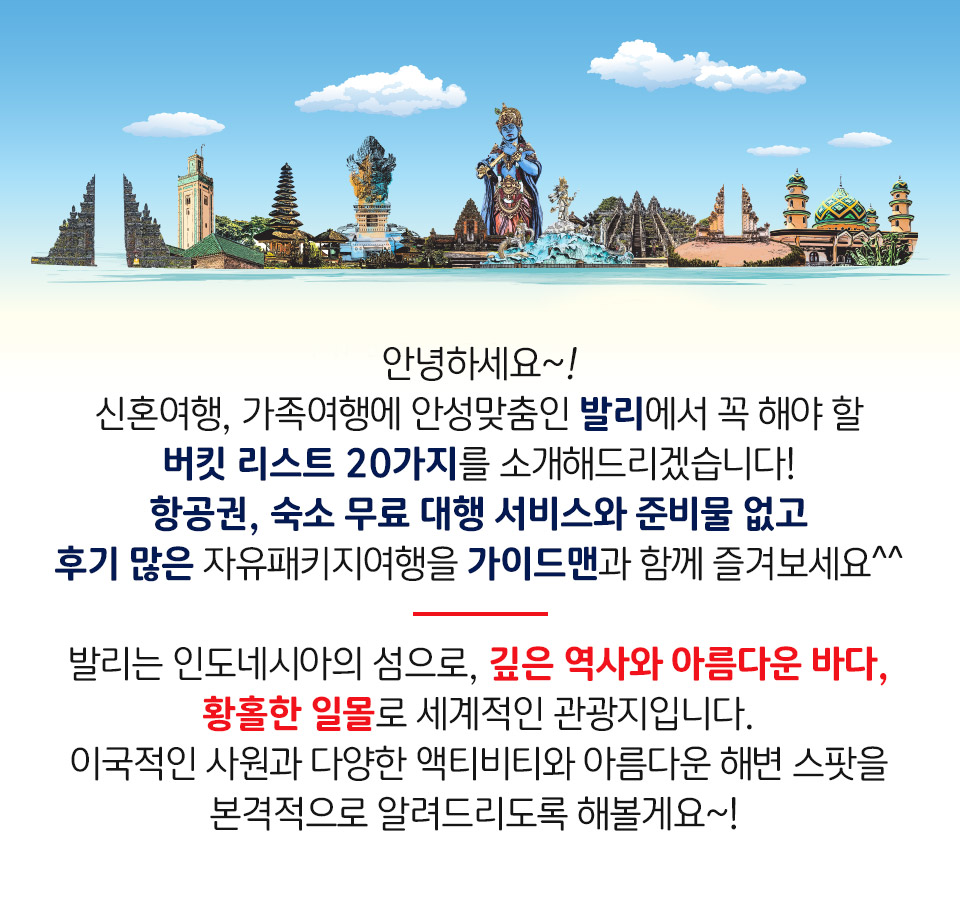 발리 여행 시 꼭 즐겨봐야 할 버킷리스트 20!!